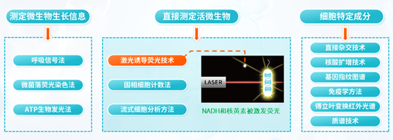 為克服傳統(tǒng)微生物檢測方法的局限,滿足快速放行的需求,微生物快檢技術(shù)應(yīng)運而生??鞕z技術(shù)分為三類:測定微生物生長信息、直接測定活微生物、測定細胞特定成分。其中,激光誘導(dǎo)熒光技術(shù)作為一種無損檢測技術(shù),在水質(zhì)檢測中尤為重要,為傳統(tǒng)檢測方法帶來革命性的改變。